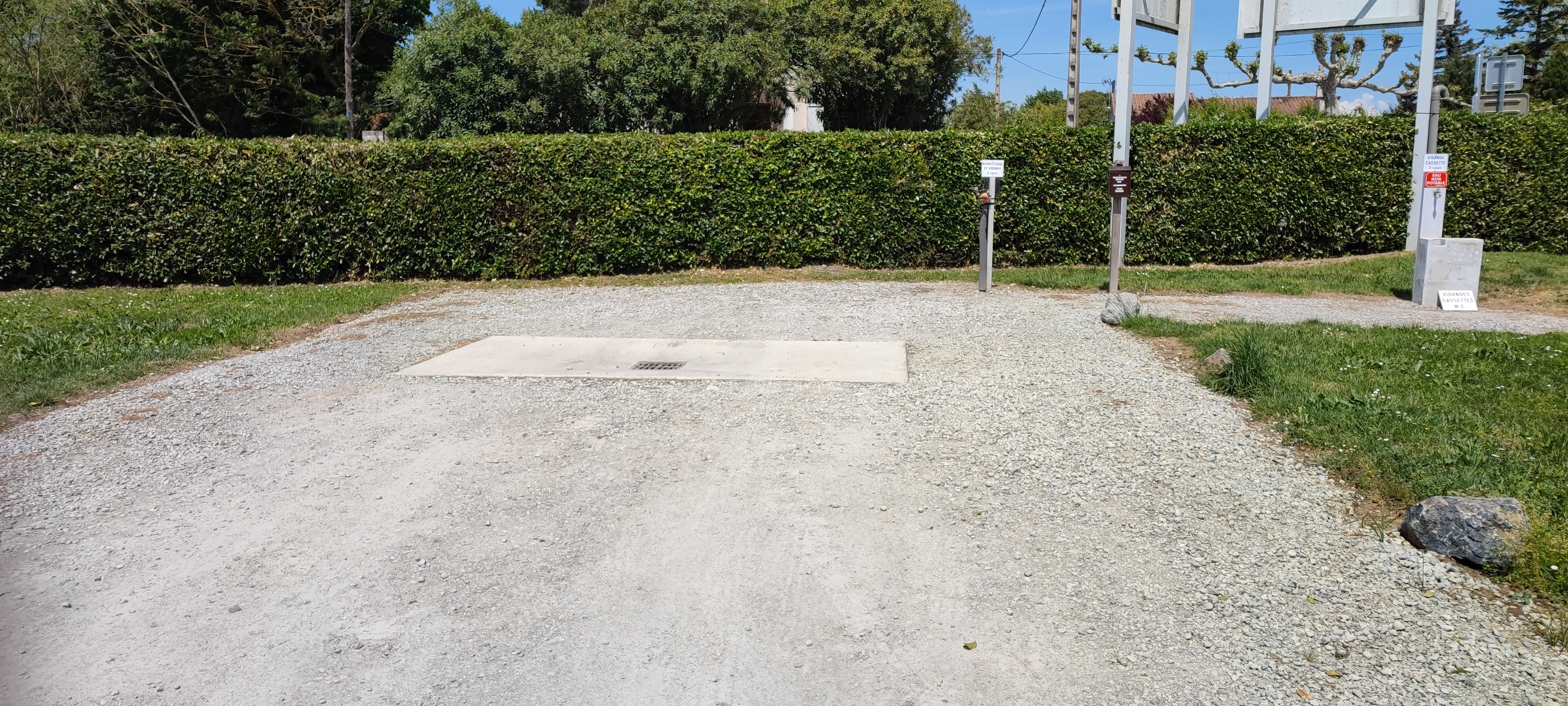 Nous l'avons utilisé pour remplir et vider des réservoirs. Avec la vidange des toilettes, c'est 6 euros. Ce n'est pas que ce soit très économique, mais au moins cela rend le service. Il est à côté de la route et a de bonnes parcelles, il est géré par un homme qui habite juste là.