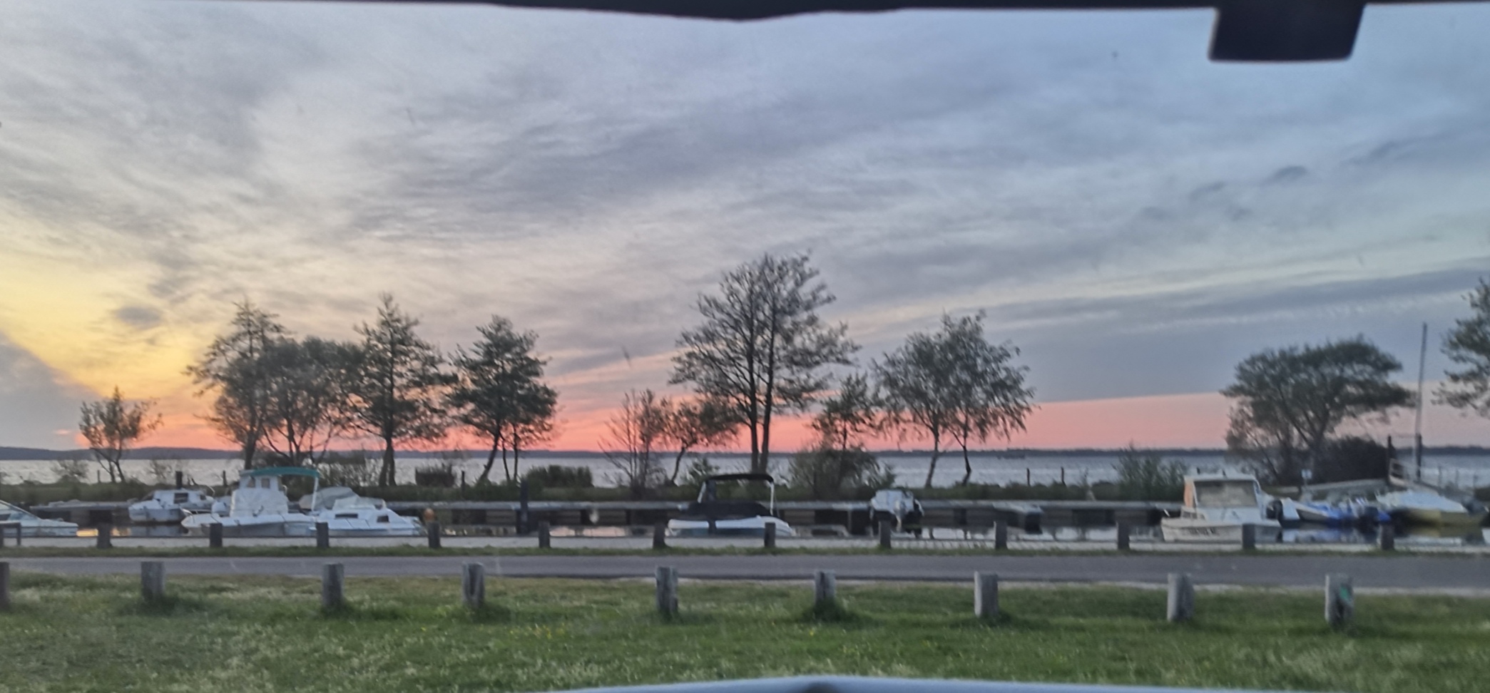 Jolie vue Sur le port et le lac. Endroit tres calme . 8€ pour 24h. Plage avec sable et jeux pour enfant à 50 mètres .