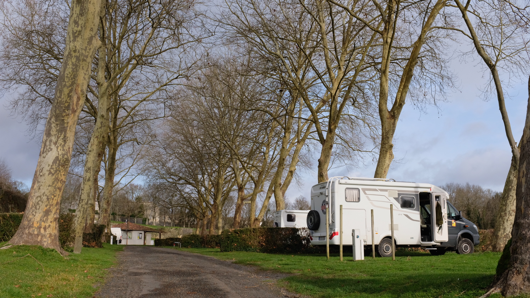 Aire aux larges emplacements arborés, sur herbe avec haies séparatives. Les 24h ;13€50+ la carte 5€ la 1 ère fois, tout compris. Ensemble propre. Au pied du château et à deux pas du fleuve Charente. Voir ferrée et route passant à proximité