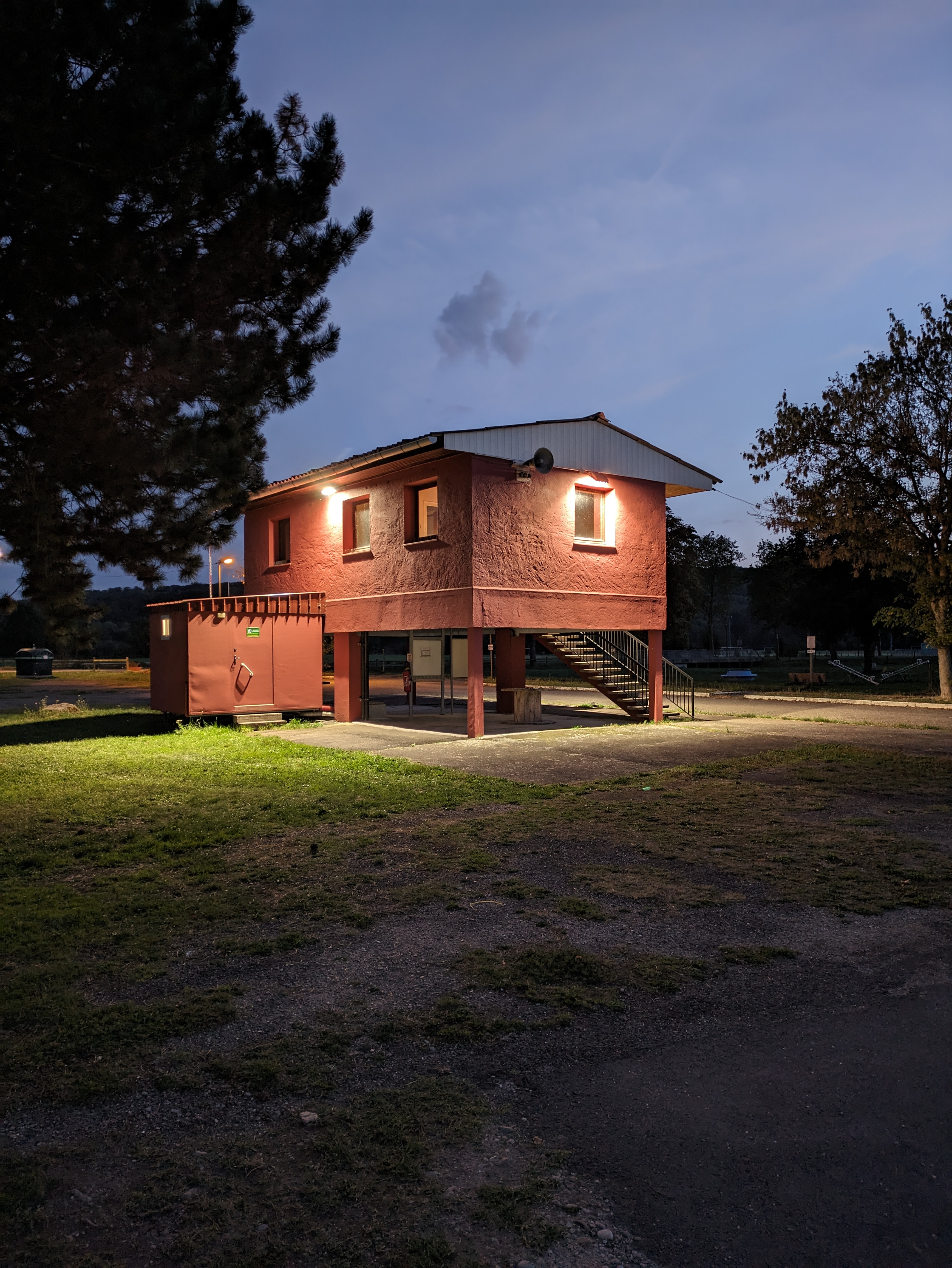 La place de parking est située non loin de Nancy dans un endroit idyllique sur la Moselle, terrain de prairie très plat. 9 EUR/nuit ne semble pas bon marché, mais il y a beaucoup d'espace et l'électricité est incluse. Le poste sanitaire n'est pas génial (vider la cassette des toilettes), mais ça se fait rarement avec un nez fin. Le matin, les vaches avec leurs veaux sont arrivées dans les pâturages environnants, super ! Je n'étais là que pour une courte nuit, mais j'avais quand même de bons contacts avec des personnes partageant les mêmes idées. Barrière à l'entrée et à la sortie : Attention, le code de sortie se trouve sur le ticket d'entrée !