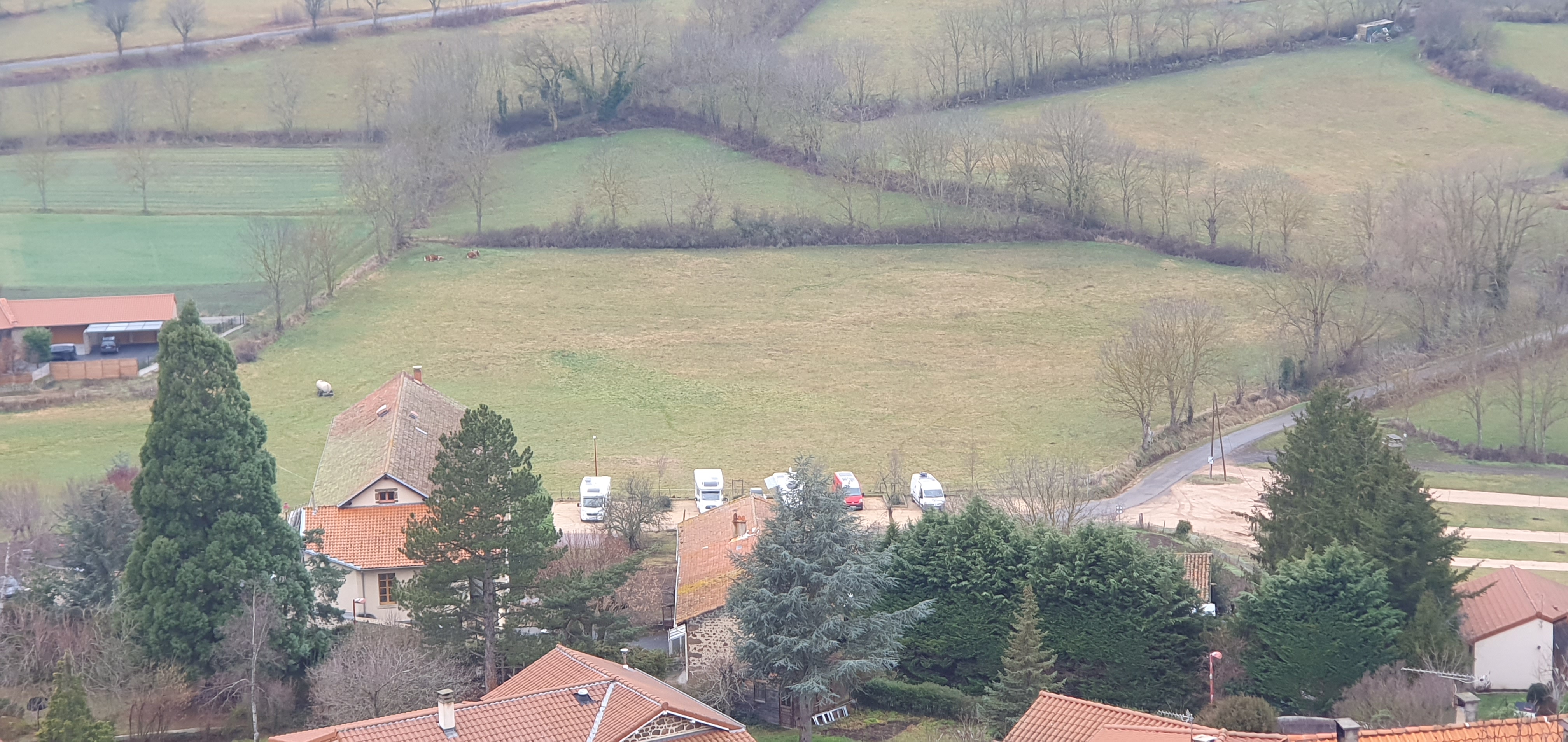 Une aire légèrement en pente. Mais tellement agreable avec une belle vue sur la vallée dans un calme absolu. De belles balades en VTT avec de nombreuses pistes ou a pied pour de belles promenades. Allez au village voir ce charmant M de + de 80 printemps qui tient toujours sa petite épicerie.