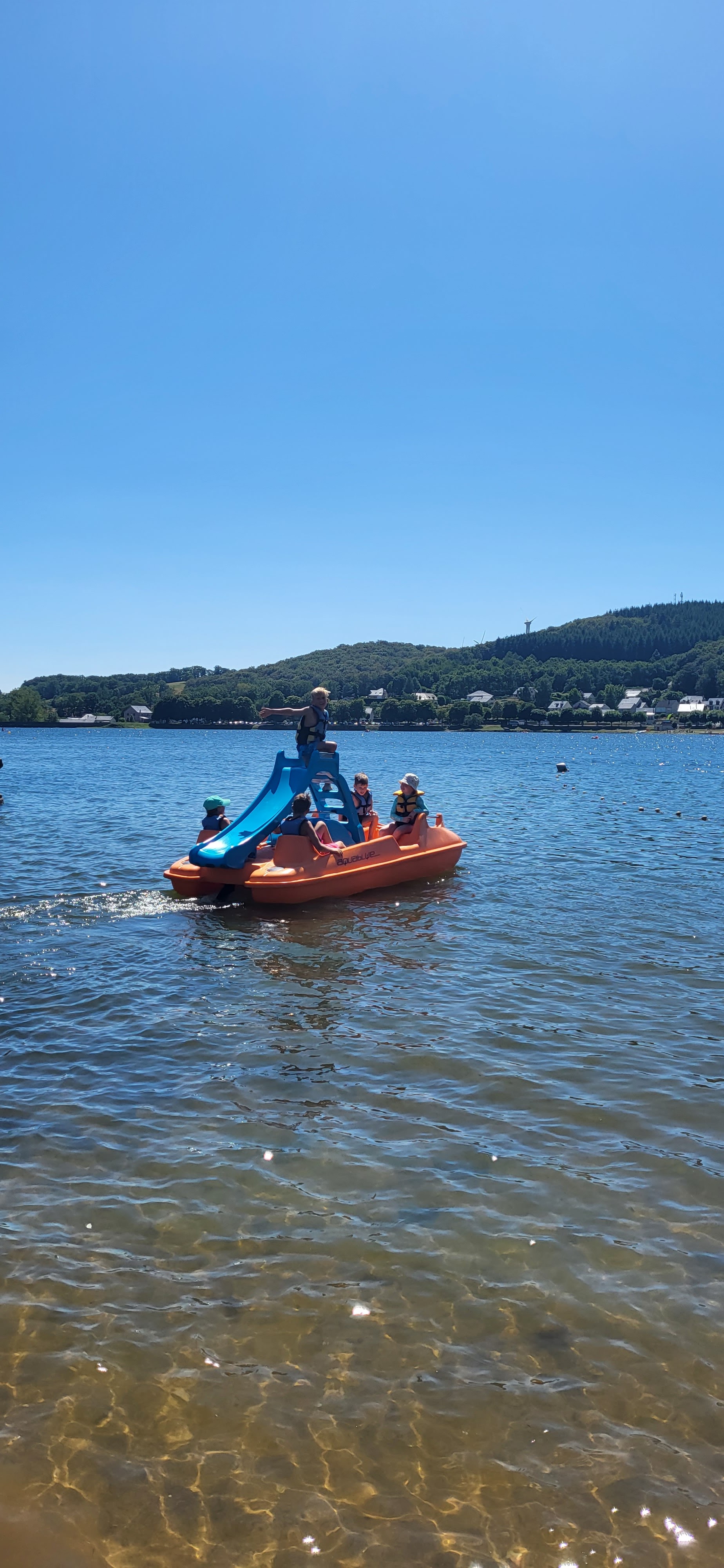 Belle journée au lac. Équipements de jeux, aire de baignade surveillée, possibilité de louer pédalo, SUP, canot. Excellente restauration ! Faire le tour du lac fait 11 km et est très facile !