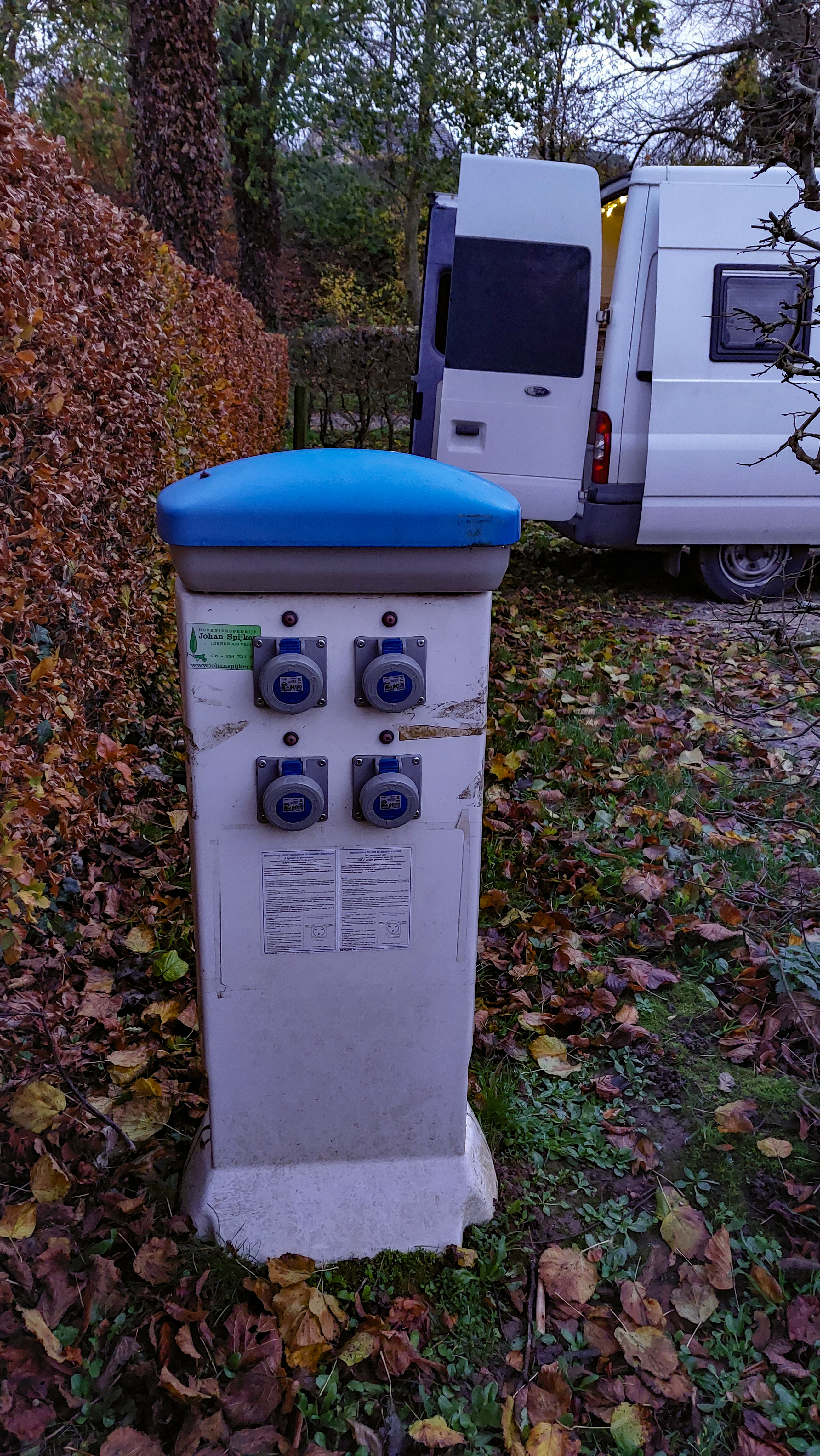 Petite aire calme proche d'un joli village pittoresque dans une petite zone derrière le centre de loisirs - il y a une belle aire de jeux pour enfants ainsi que des poteaux de football pour les enfants. Le stationnement de nuit gratuit, l'électricité et l'eau coûtent 5 € chacun, payables avec un jeton (jeton) que vous pouvez acheter chez le marchand de journaux du village. L'erreur d'un écolier de ma part a été de ne pas réaliser que le jeton était de minuit à minuit et donc notre réfrigérateur s'est éteint jusqu'à ce que je m'en rende compte à 8 heures du matin !