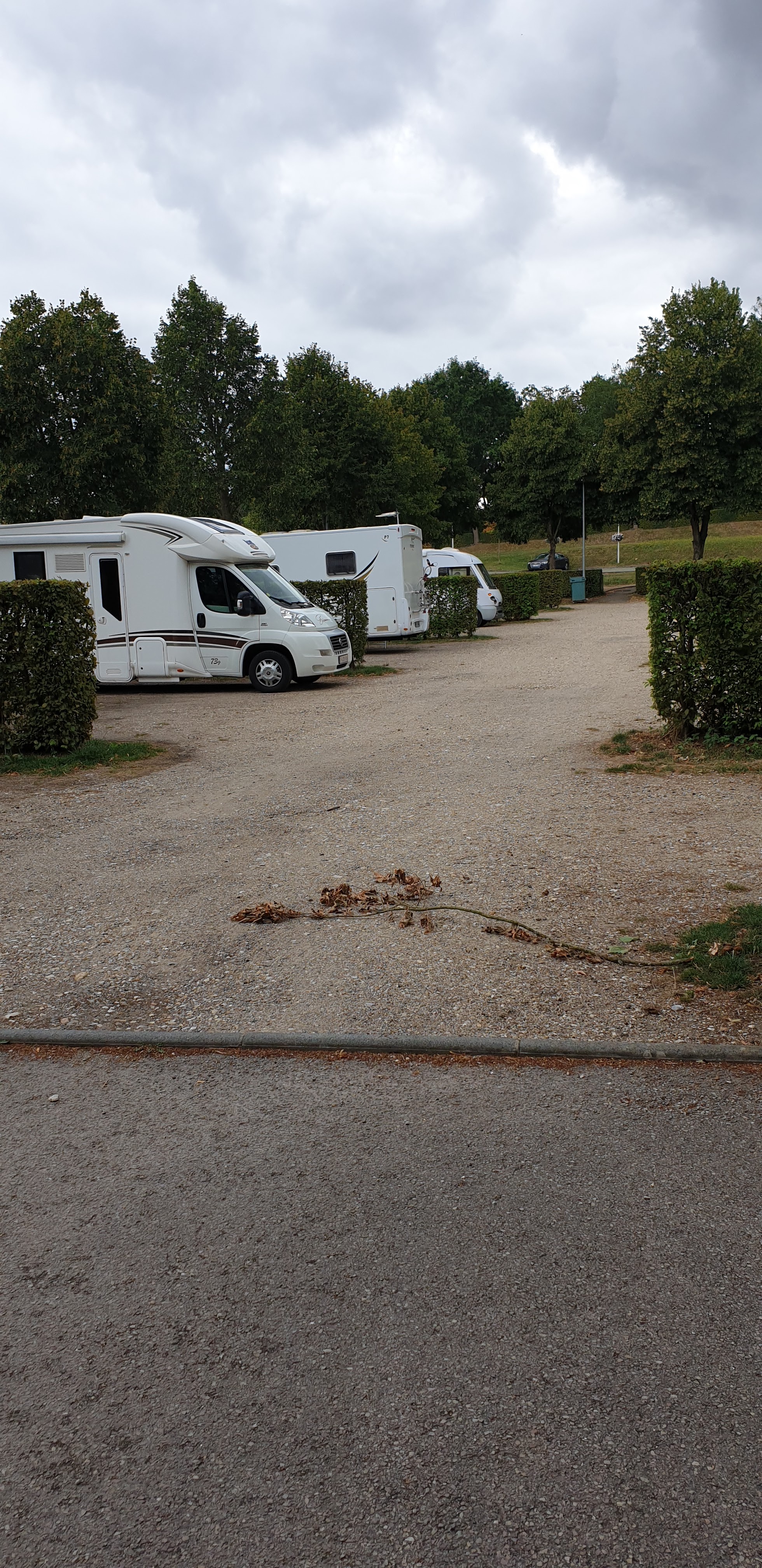 Bel espace avec haies entre paires de places de parking. Non loin de la ville. Ce serait 5 étoiles mais un peu de bruit de la route à proximité. J'y retournerais cependant.