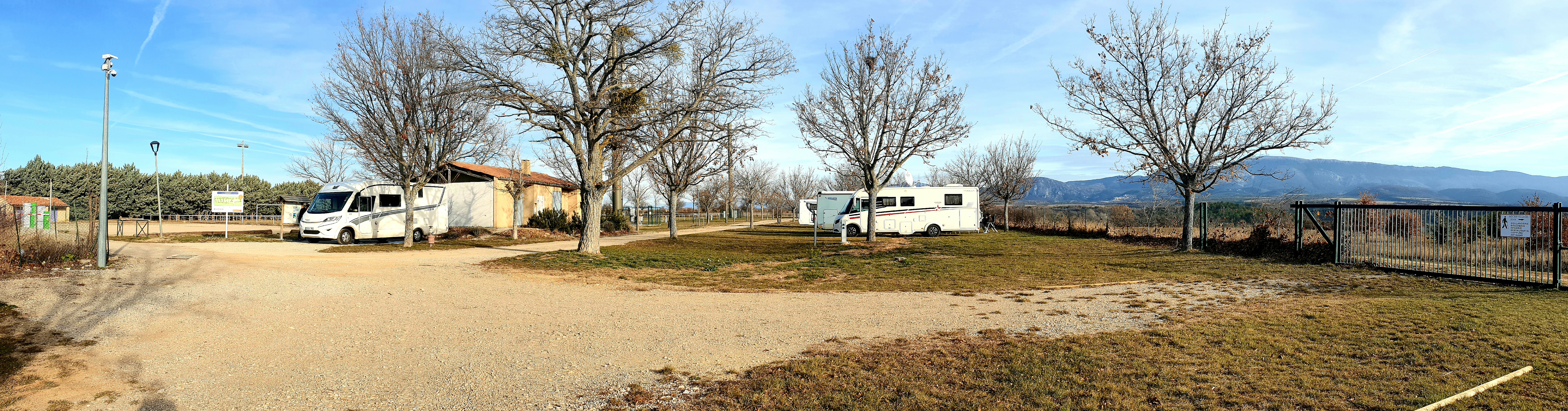 Aire camping car ,camper Park,plus isolé que cela pas possible ,pour nous c'est un plus ,on domine la vallée et champs de lavande , à savoir que nous sommes hors saison,donc personne , situé derrière un terrain de foot et tout au bout d'un chemin Pour nous avec des chiens , impeccable,calme