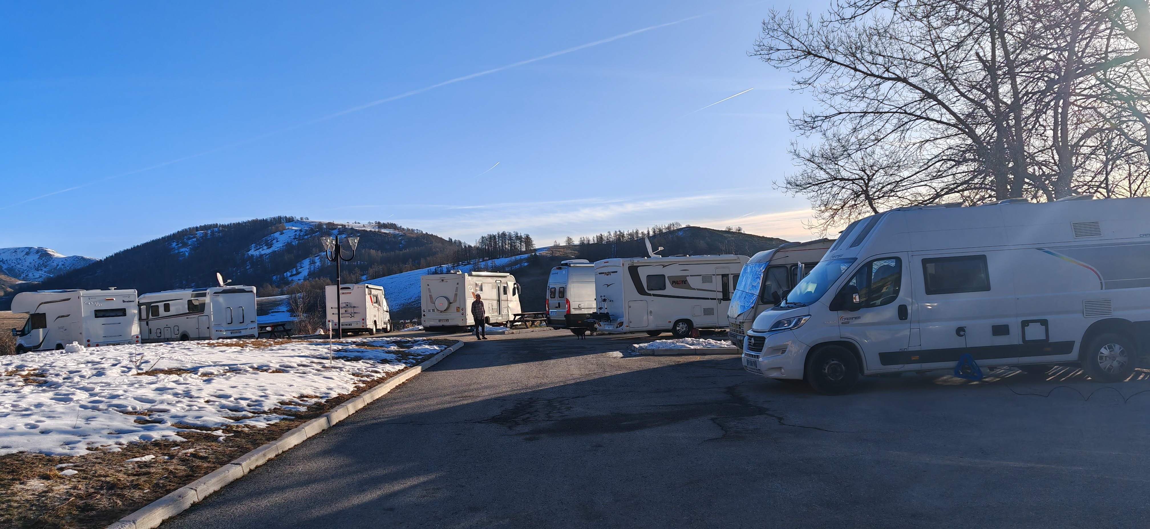 Une aire au top très calme. Avec douche et Wc . Machine a laver et seche linge. Proche du centre il y a une navette qui passe à l aire toutes les 20minutes qui vous amener au pied des pistes