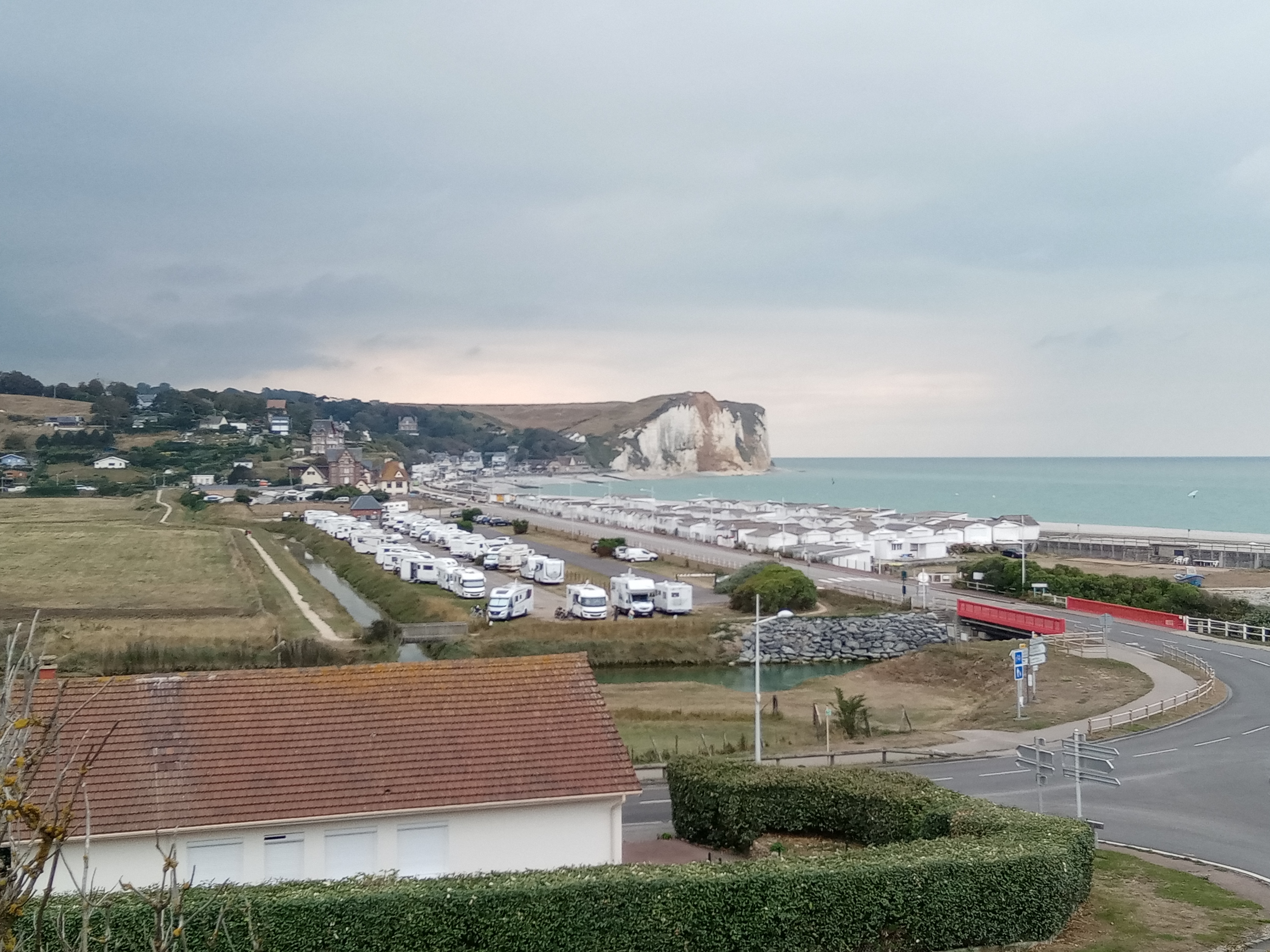 9€20 pour un.parking serré avec vidange et toilettes inclus proche de la plage de galets vue bouchée par les chalets au bord de mer .Pas de possibilité électrique. Séjour intéressant en cas de canicule car il y a toujours du vent Comme souvent en bord de mer les aires de cc ne sont pas a la hauteur . On trouve des campings acsi plus cher mais on a du confort