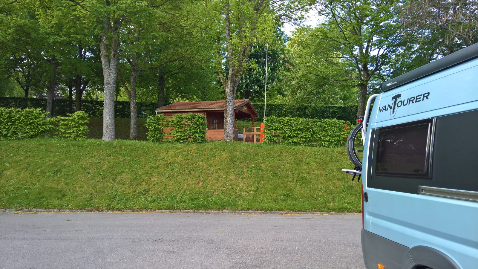 Espace magnifiquement conçu situé directement en dessous du parc du château. Le seul inconvénient est l'étroitesse de l'espace. Si le véhicule mesure plus de 8,50 m, il y aura certainement des difficultés pour accéder à l'une ou l'autre place de stationnement. Dans la plupart des endroits, il n’y a pas de réception satellite, mais le WiFi fonctionne correctement.